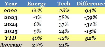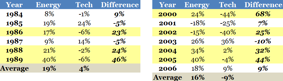 Just look at the past 4+ years. When energy has been up, tech has been down, and vice versa.